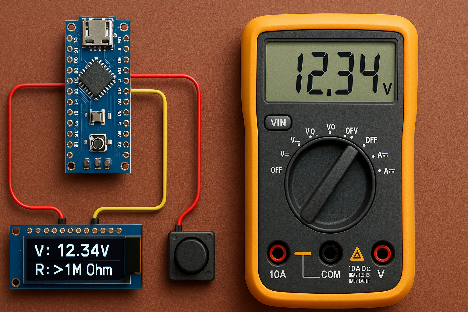 Build your own Arduino Nano voltmeter & ohmmeter with 0.91″ OLED display—perfect for electronics blogs and maker projects.