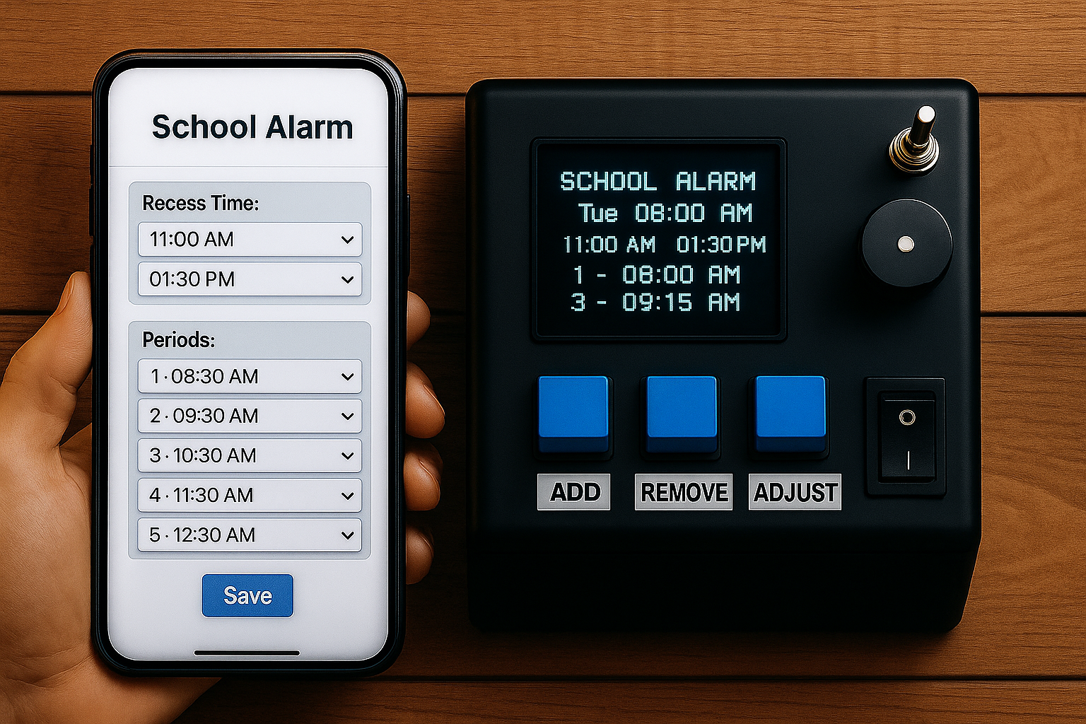 - Smart School Alarm with Recess & Off-Time Alerts