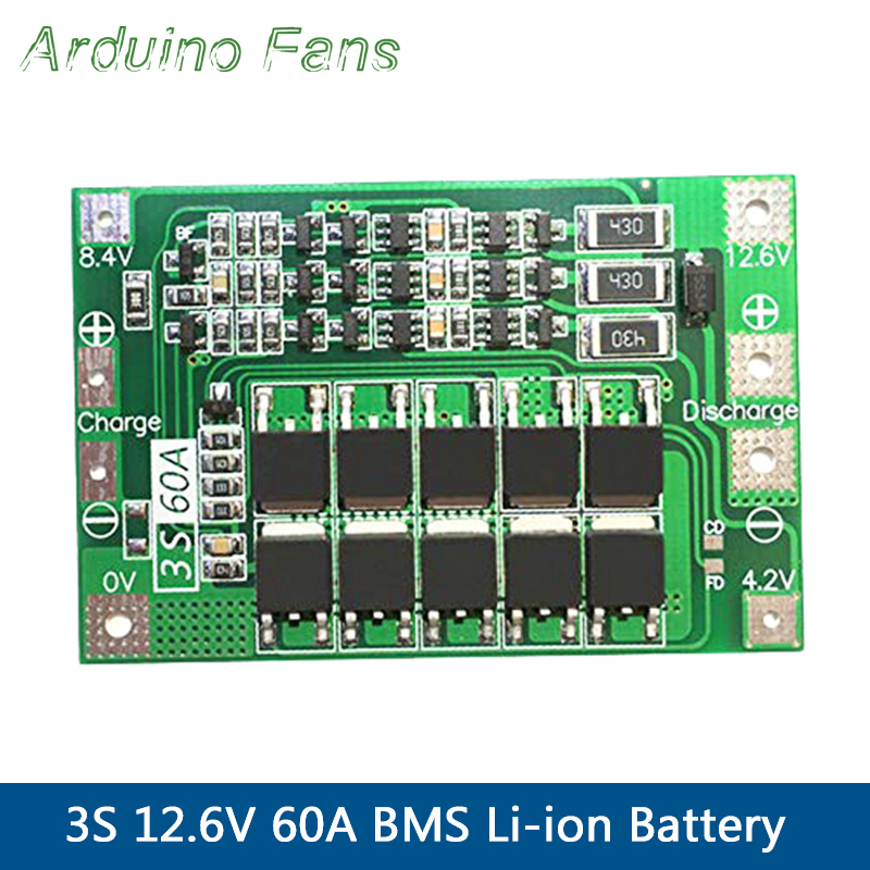 3S 12.6V 60A Li-ion Lithium 18650 Battery Cell BMS Protection Charger Board Module with Balance Function for DIY Battery
