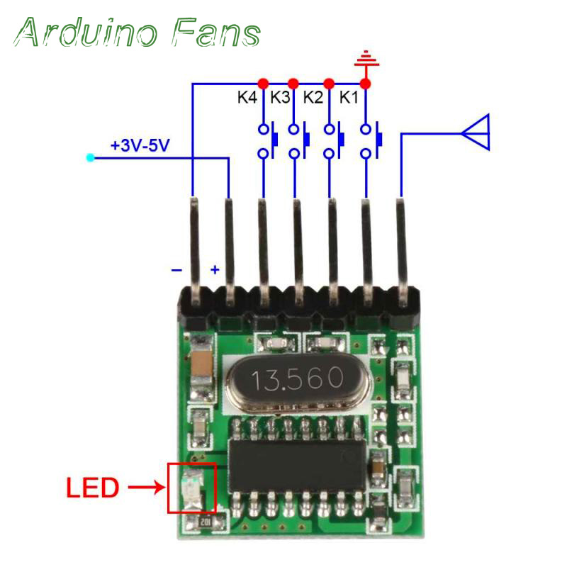 4Ch 433Mhz Remote Control Switch RF Receiver and Transmitter Learning Code EV1527 Button For Arduino