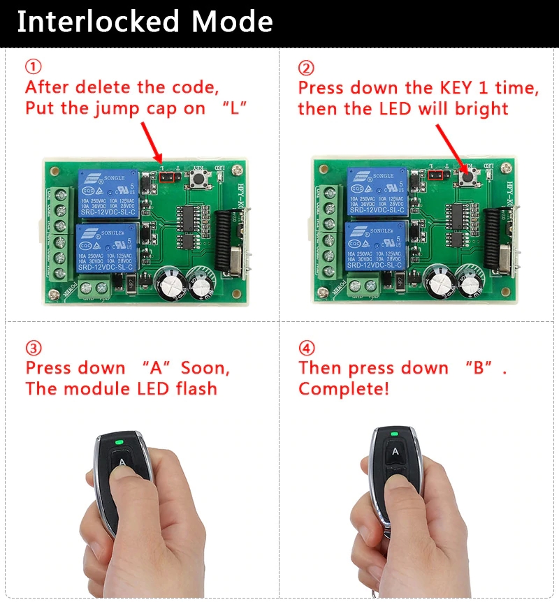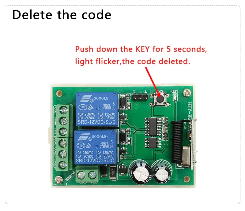 Perfect suitable for remote control of entrance guard switch, Light controlled switch, electrically operated gate/window, roller shutter door, garage door, electrically operated gate and other telecommand equipments.