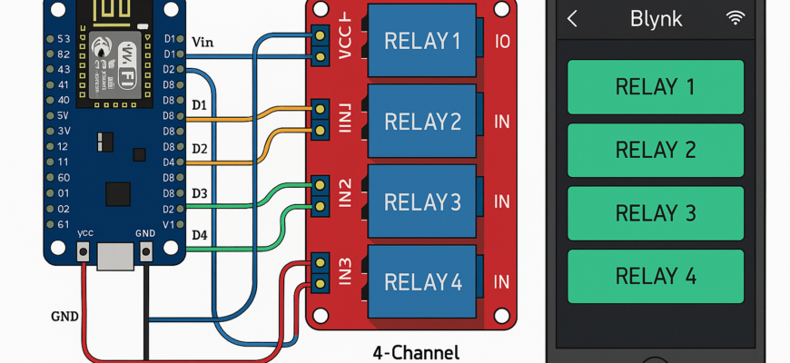 Controlling 4 relays using a NodeMCU (ESP8266) via Wi-Fi and the Blynk app is a great way to build an IoT home automation project. Below is a step-by-step guide, including the circuit diagram, Blynk setup, and Arduino code. š§° Requirements š² Blynk App Setup š» Arduino Code First, install the following libraries via Library Manager: […]